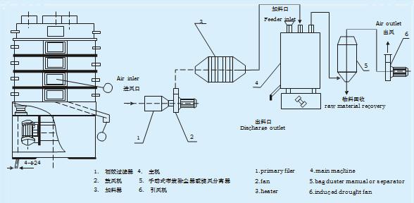 ◎ 熱風(fēng)多次穿過(guò)物料層與物料逆向流動(dòng),使熱交換充分,熱效率高。